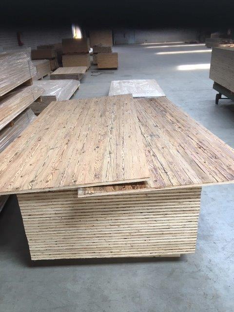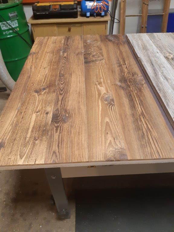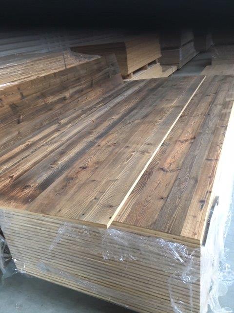 Die Türen sind beidseitig mit Altholzfurnier auf 3-Schichtplatten verleimt.