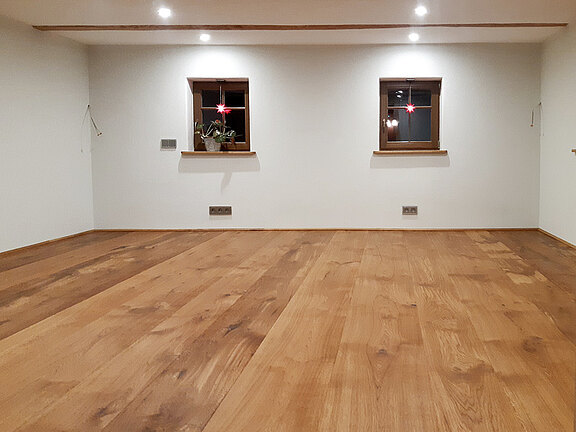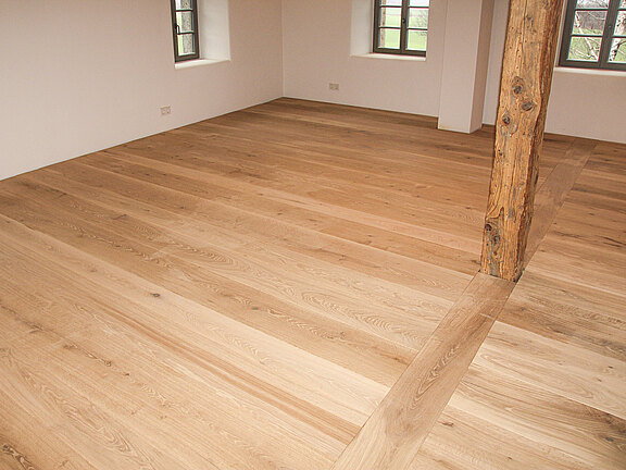 Sie bekommen bei uns hochwertige, fertig geschliffene Dielung. Auf Wunsch auch als rustikale Landhausdielung.