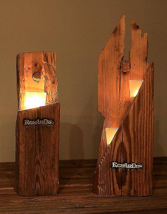 Lanterns made from old wood beams