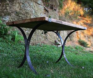 - de vieilles pentures de porte deviennent des pieds de table individuels