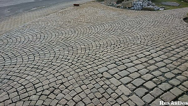 Die Oberfläche der alten Pflastersteine ist abgefahren / glatt und in den Farben grau und braun erhältlich.