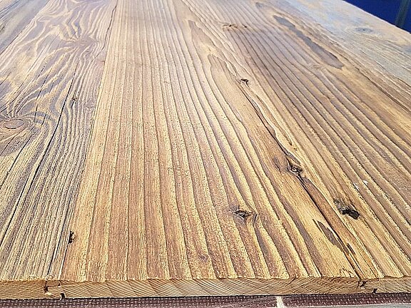 Sie können unser Altholz wie von uns geliefert direkt verbauen. Die Farbe der Oberfläche verändert sich im Innenbereich nicht mehr.