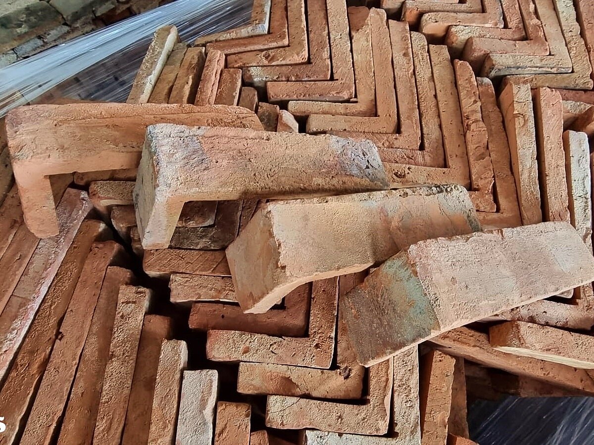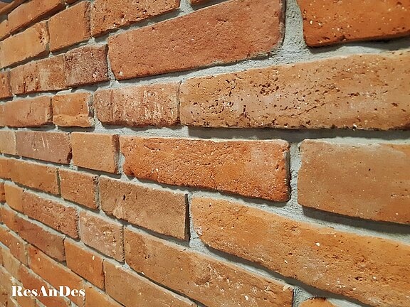Historische Riemchen - Wandverblender erhalten Sie bei uns hergestellt aus original alten Ziegeln für die Wand- und Bodengestaltung.